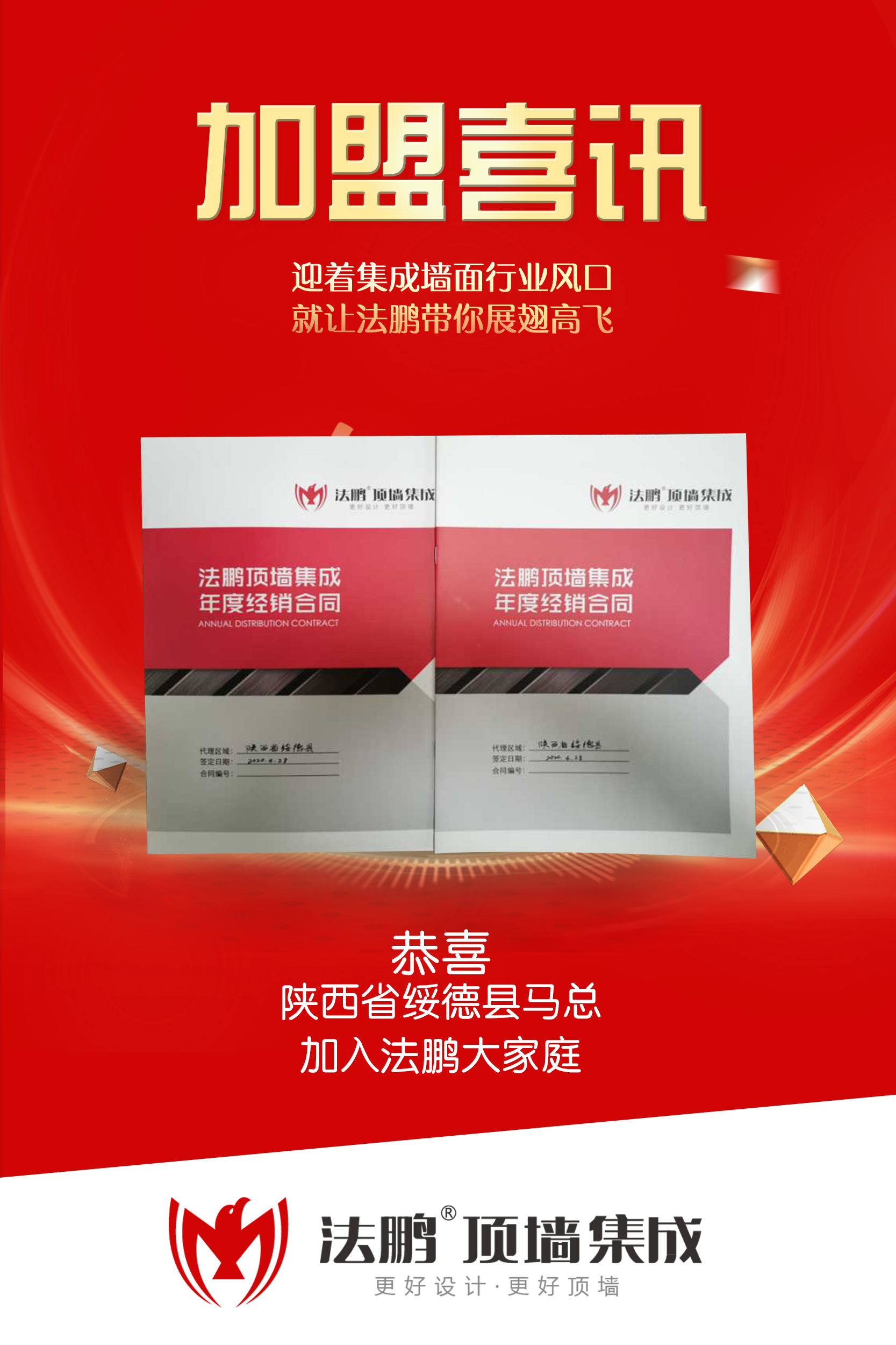 熱烈祝賀陜西省綏德縣馬總加入法鵬頂墻集成大家庭!