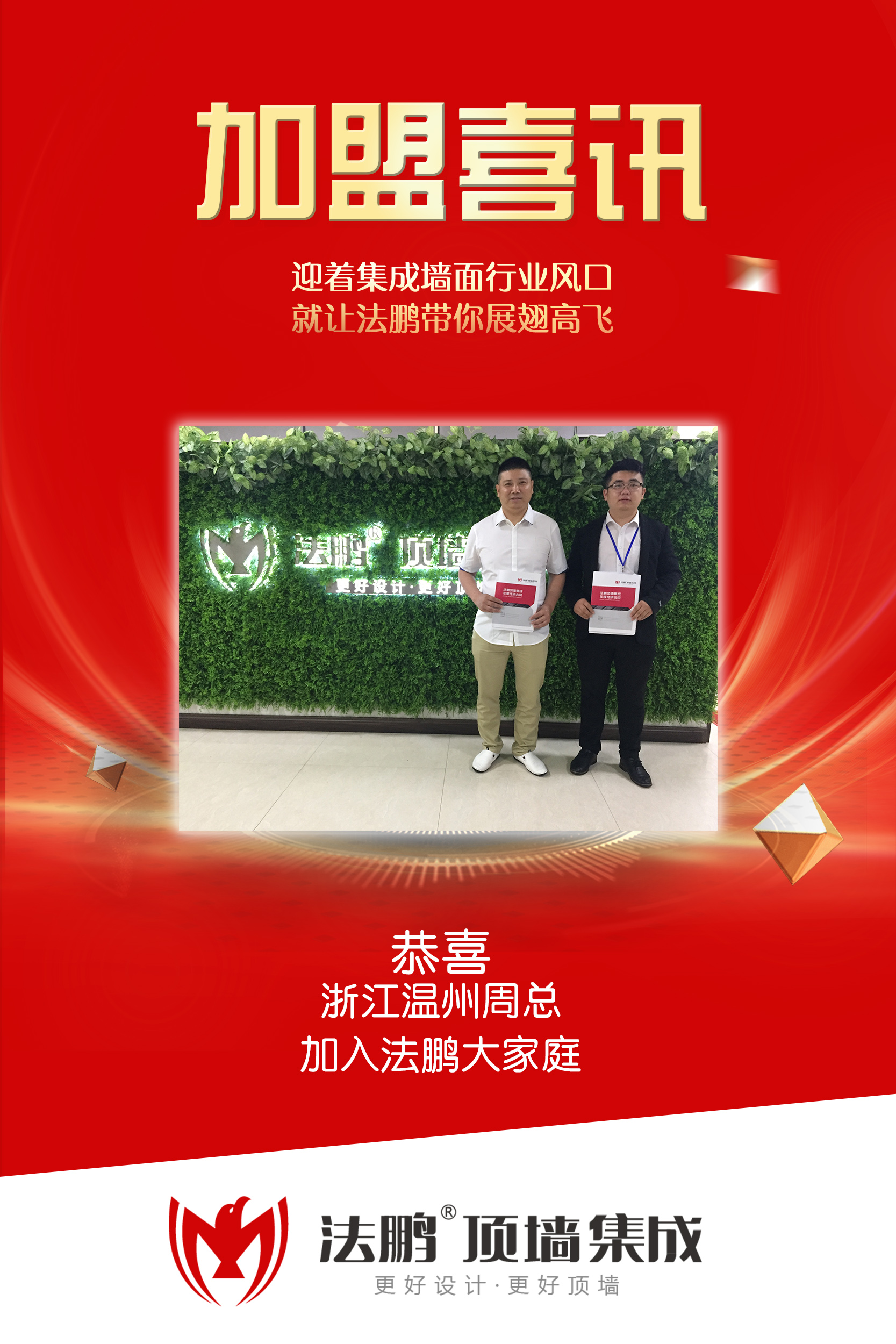 法鵬頂墻集成高歌猛進,簽約浙江溫州周總,來看看他的幸福時刻!