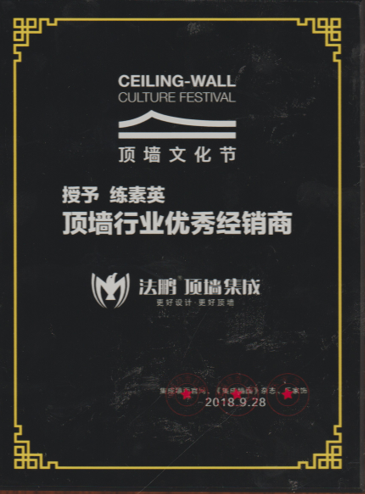 法鵬頂墻集成在本次頂墻文化節(jié)上榮獲多項(xiàng)大獎(jiǎng),除行業(yè)杰出推動(dòng)獎(jiǎng)和行業(yè)指定集采供應(yīng)商以外,山東菏澤法鵬經(jīng)銷商戚總,福建廈門(mén)法鵬經(jīng)銷商練總喜獲頂墻集成行業(yè)優(yōu)秀經(jīng)銷商榮譽(yù)稱號(hào)。