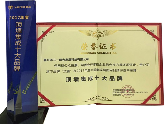 法鵬頂墻集成榮獲中國集成墻面網(wǎng)頂墻集成十大品牌!
