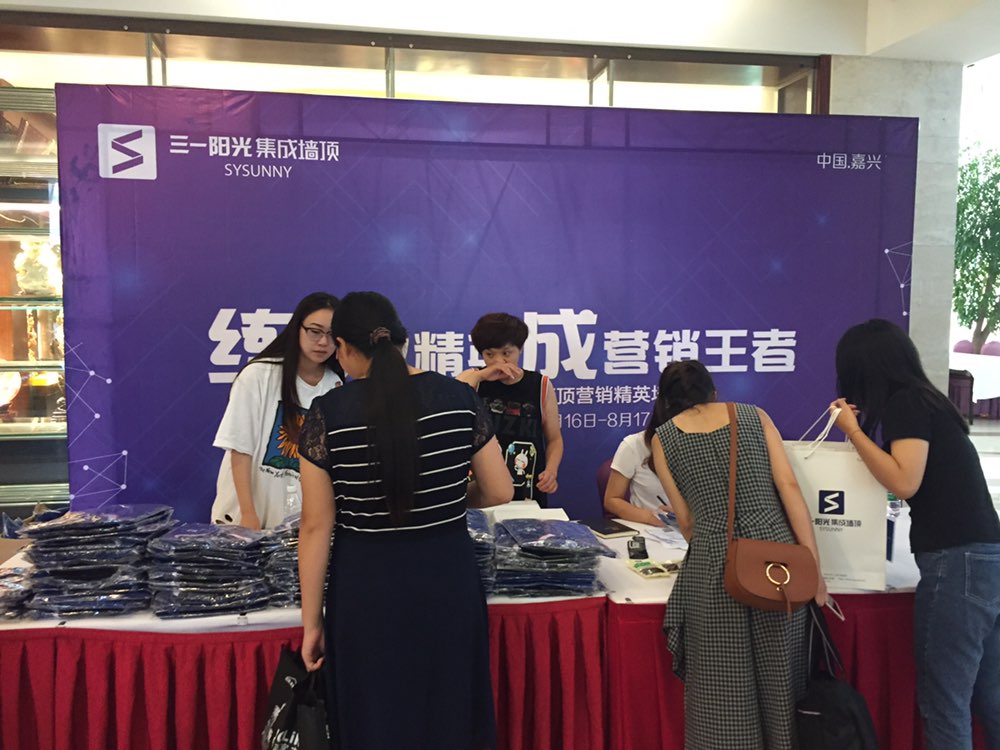 這個(gè)夏天,由三一陽光獨(dú)家主辦的《練行業(yè)精英 成營銷王者——2017年三一陽光集成墻頂營銷精英培訓(xùn)會》將于明后兩天在嘉興新洲國際大酒店隆重舉行。這兩天,三一陽光的家人們紛紛回嘉簽到。三一陽光的工作人員也在會場處歡迎他們回嘉。